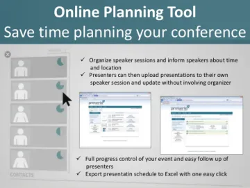 La Conferencia de Preseria es una aplicación web para organizar su conferencia e invitar a oradores a subir sus presentaciones. Es un software de escritorio que descarga y ejecuta las presentaciones a la perfección. También es una solución de publicación para facilitar la publicación web de presentaciones de conferencias.